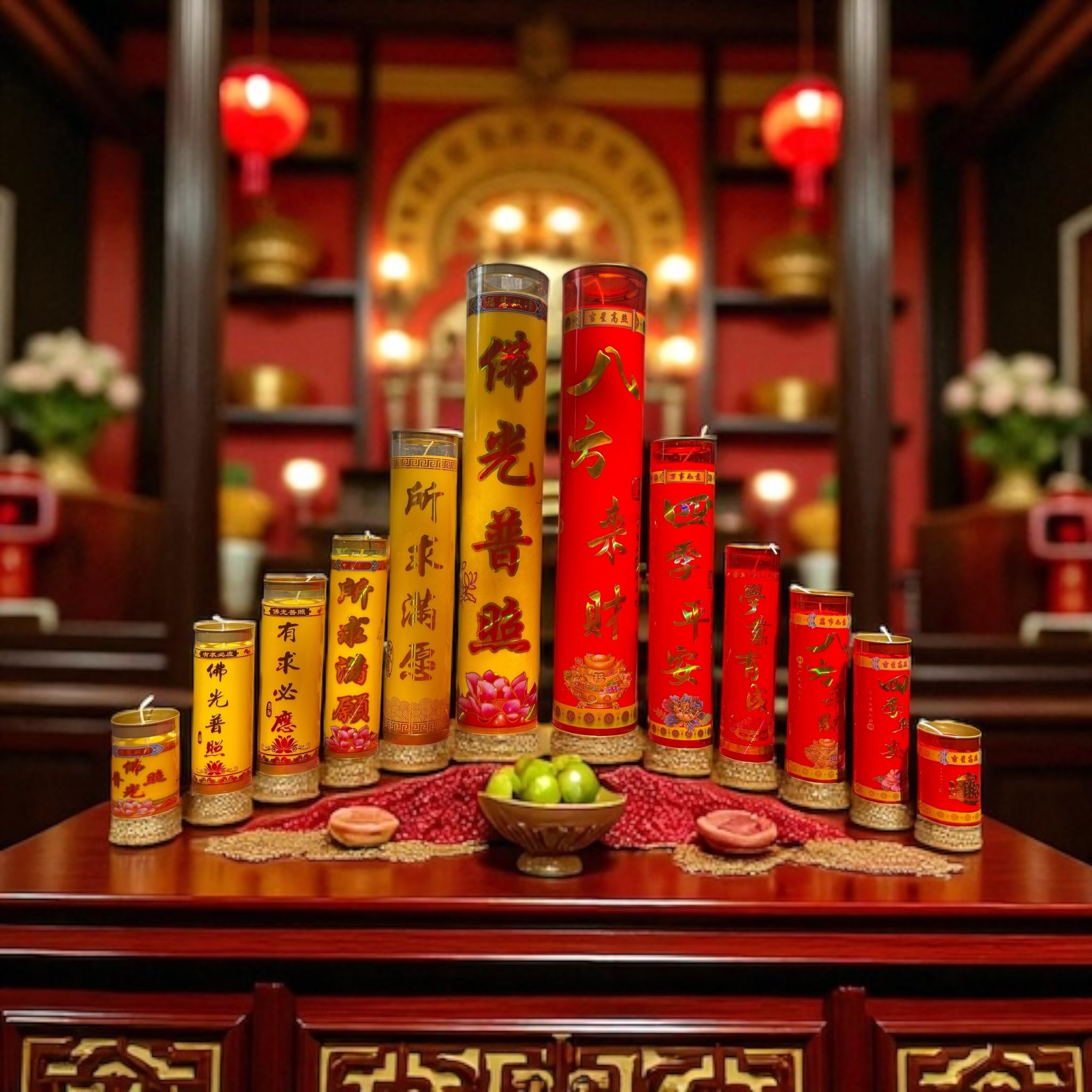 Nến Thái Đẩu là sản phẩm chuyên dụng trong thờ cúng Phật giáo, được nhiều chùa chiền và Phật tử tin dùng. Với thiết kế bao bì sang trọng màu đỏ, in họa tiết hoa sen cùng chữ “Phật” vàng nổi bật, sản phẩm không chỉ mang tính thẩm mỹ mà còn thể hiện sự trang nghiêm, thành kính trong không gian thờ tự.