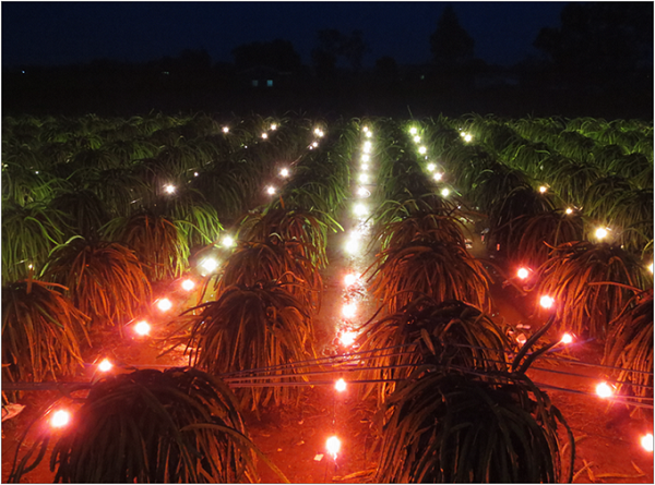 Khoảng chục năm trở lại đây, nhiều người trồng cây thanh long đã vận dụng phương pháp sử dụng đèn Led chuyên dụng để thúc cây thanh long ra hoa trái vụ. Phương pháp này dựa trên cơ sở nhận biết cây thanh long là cây ngày dài nên có thể dùng ánh sáng đèn để cắt thời gian ban đêm. Đã có một số điều tra và thí nghiệm về vấn đề này và kết quả cho thấy là rất khả quan.